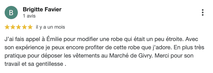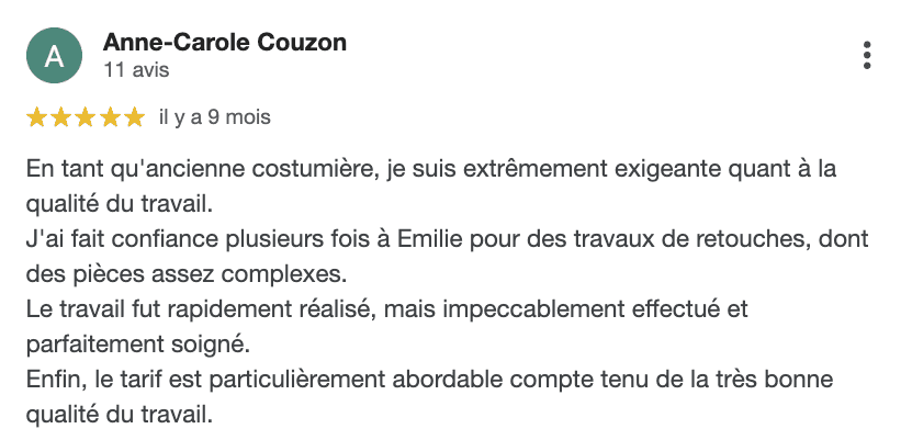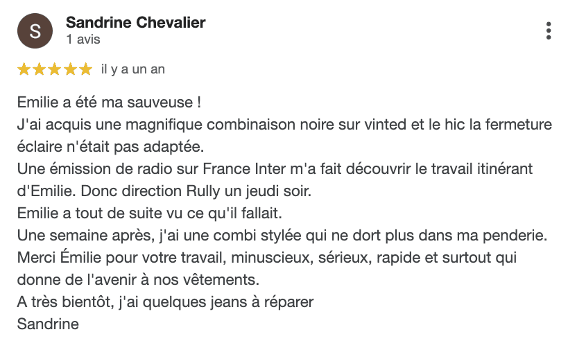 Mon service de retouche de vêtements, ce sont mes client·es qui en parlent le mieux !
